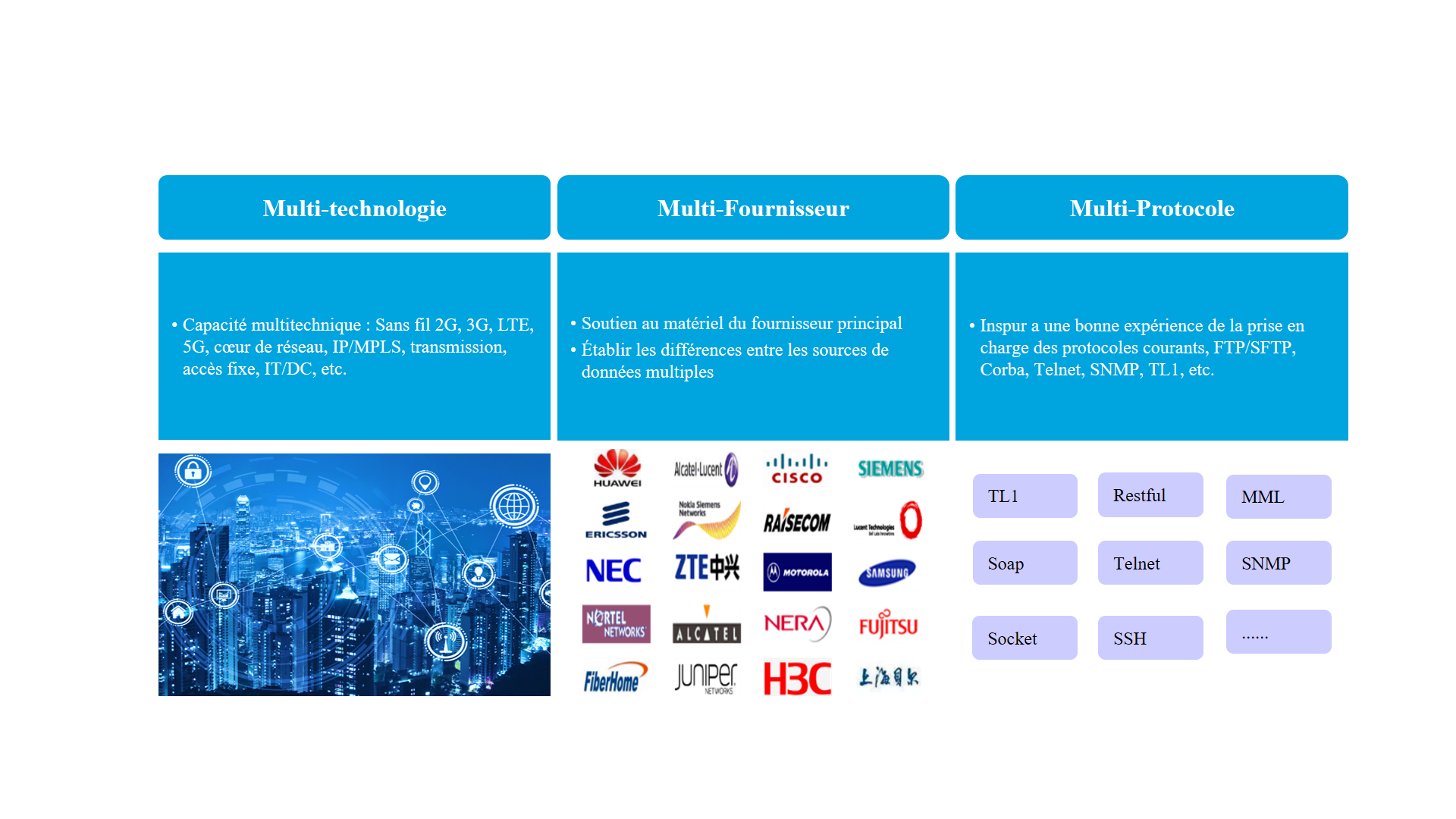 La nouvelle génération de gestion unifiée des ressources (URM) permet non seulement de gérer de manière centralisée différents domaines de réseaux, types de ressources et supports de services télécoms traditionnels et nouveaux, mais elle apporte également une toute nouvelle façon pour exploiter et maintenir les ressources avec l'aide d'un jumeau numérique et de la technologie IA.