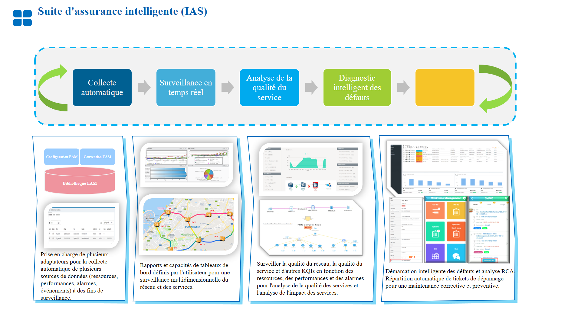 L'OSS numérique d'Inspur est une plate-forme de gestion complète couvrant la suite d'approvisionnement automatique (APS) et la suite d'assurance intelligente (IAS) visant à aider les entreprises à réaliser une gestion automatisée et intelligente du réseau, des services et de l'infrastructure IT.