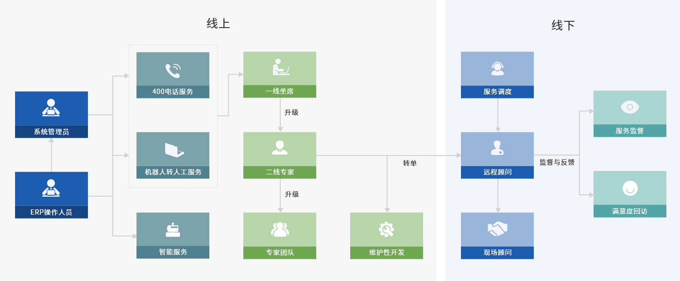 浪潮服务支持O2O服务模式,实现了线上、线下整合,人工与AI进行结合