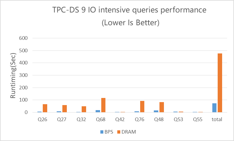 本次使用TPC-DS测试了Spark在DRAM和BPS平台下的性能