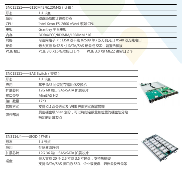 采用业界标准SAS基础架构的浪潮SAS Switch,可提供分等级存储的解决方案,整个设备仅占用1U 浪潮整机柜服务器SR系统节点空间,上行与SAS卡或计算节点相连,下行连接JBOD或直接挂接硬盘等存储设备,整体可连接超过200个存储设备,打造15PB以上的超大存储池。