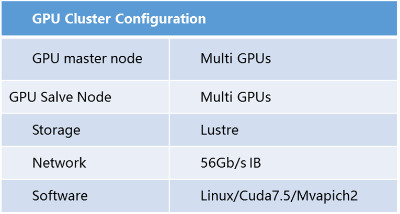深度卷积神经网络(CNN)算法是深度学习领域普遍采用的神经网络构建模型,Caffe是目前最快的CNN架构。浪潮的集群版Caffe计算框架正是切中当下深度学习的迫切需求,它采用MPI技术对Caffe版本进行数据并行优化,该框架基于伯克利caffe架构进行开发,完全保留原始caffe架构的特性。即:纯粹的C++/CUDA架构,支持命令行、Python和MATLAB接口等多种编程方式,具备上手快、速度快、模块化、开放性等众多特性,为用户提供了最佳的应用体验。另外,鉴于众多用户基于CPU进行深度学习应用研究的现实,浪潮还可提供C-G算法迁移增值服务,针对用户目前的深度学习算法,做硬件适配性算法迁移和升级优化,帮助用户做到算法的更快,更好。硬件架构:IB网络+GPU集群+Lustre并行存储