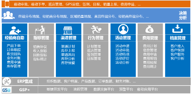 经销商自助平台:为经销商提供全面网络化自助管理平台,实现网上下单、订单跟踪、收货确认、网上对账、费用申请、库存上报全面管理。