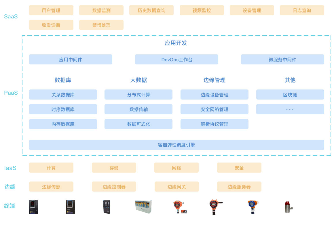 SaaS 层:提供各种传统工具类软件、管理类软件的工业应用服务。