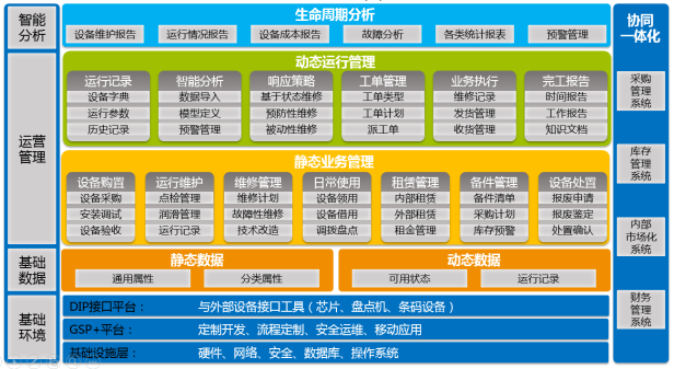 针对矿业集团统一的设备管理研发,实现了设备全生命周期管理,包括设备采购管理、设备台帐管理、运行使用管理、设备修改管理、技术改造管理、单体柱管理、低值易耗设备台帐管理、设备租赁管理、设备清查管理、设备让售管理、设备闲置管理、设备报废管理、设备效益分析等功能。以设备运行历史及台帐为基础,以业务的提交、审批、执行为主线,以设备卡片信息为载体,以设备台帐管理为核心,实现设备的实物管理与价值管理的统一,达到设备的业务处理、业务监控和财务核算、财务监控的一体化;通过物联网技术、与设备自动化集控系统集成等实现设备智能化管理,推动由传统的被动维修转变为主动维修、预防式维修转变。