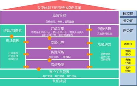 “十二五”以来,行业把“卷烟上水平”作为当前和今后一个时期烟草工作的基本方针和战略任务。而卷烟营销上水平,是实现卷烟上水平的关键。现在商业企业打造“现代流通企业”的目标越来越清晰,卷烟经营管理的全面系统化建设已经成为现阶段的核心工作。在党的十八大三中全会提出市场化改革的大形势下,烟草行业针对卷烟营销从2014年开始提出了市场化取向改革的新思路。
