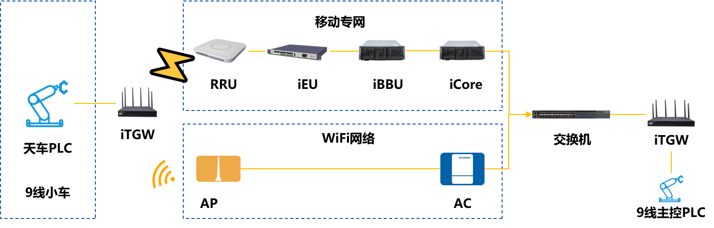 浪潮移动专网+工厂原WiFi网络实现高可靠的组网方案,结合浪潮端计算网关实现无人天车和主控台实时通讯,保证产品线高效稳定运行,为工厂自动化生产提供通讯保障。