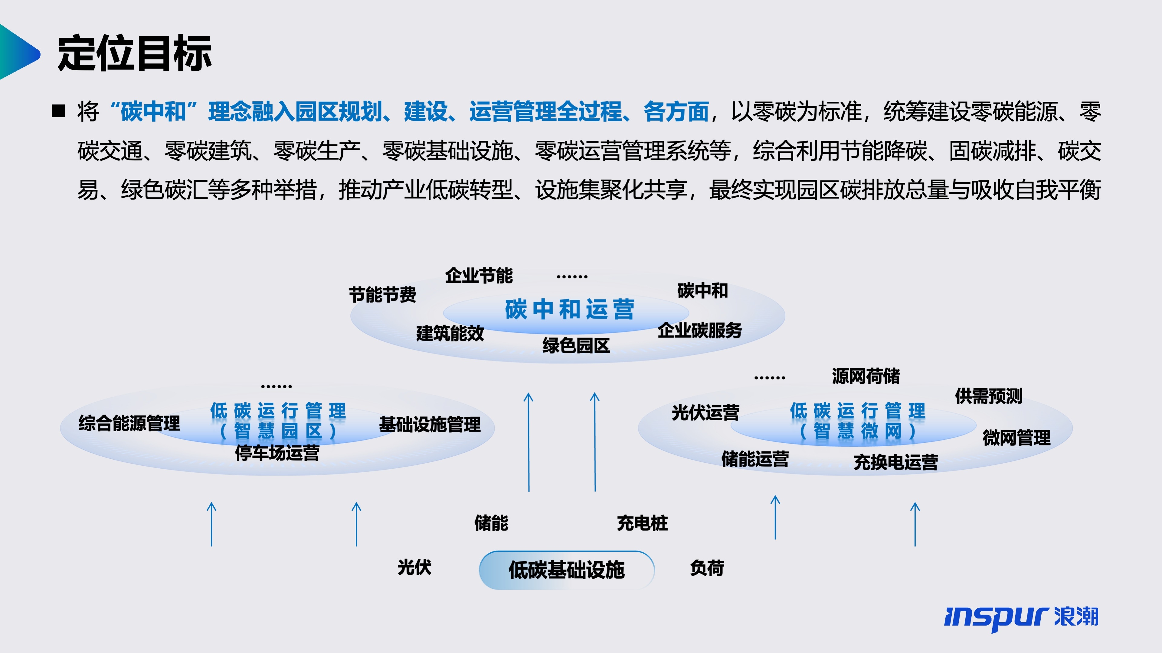 面向特色经济、工业生产等各类产业聚集区,集成管控低碳基础设施(光伏、风能、储能、电动汽车、可控负荷、冷热电联供等),构建 “源网荷储”一体化的能碳管理中心,通过合理规划、动态优化、多能协同实现零碳智慧园区建设目标。