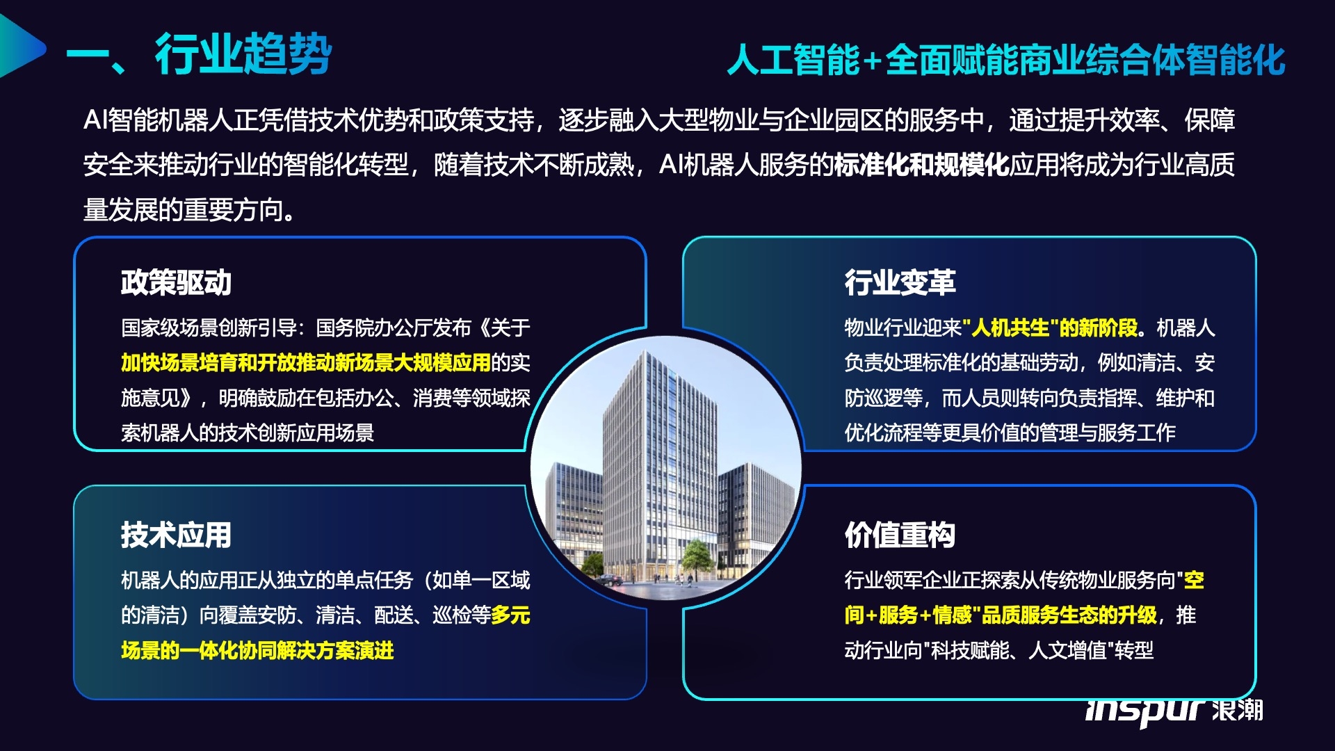 聚焦工商业服务综合体,基于智慧社区、运营管理,民生服务等场景和自身产品能力,打造室内外绿色、智能的机器人无人化服务体系,推进新型城市基础设施建设,创新城市全域数字化转型场景。