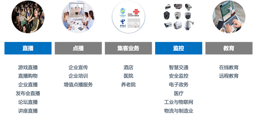 浪潮流媒体服务器采用先进的转码切片技术与标准的传输协议,提供高质量的画面、超低延时的音频与视频,能够为视频会议提供双向实时音像传输;能够为远程医疗提供连续、低延迟、高清晰的画面;能够为远程教育提供生动、实时、可交互的网上课堂;能够为视频点播提供高质量的视频服务;能够为监控提供低码率、实时、7*24小时的视频服务;能够为广告系统提供素材媒体存储和传输服务。