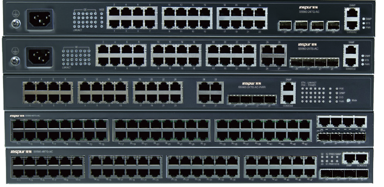 lnspurS5560 浪潮系列交换机是浪潮网络推出的新一代绿色节能千兆以太网交换机,它可以提供灵活的千兆接入和万兆上行...